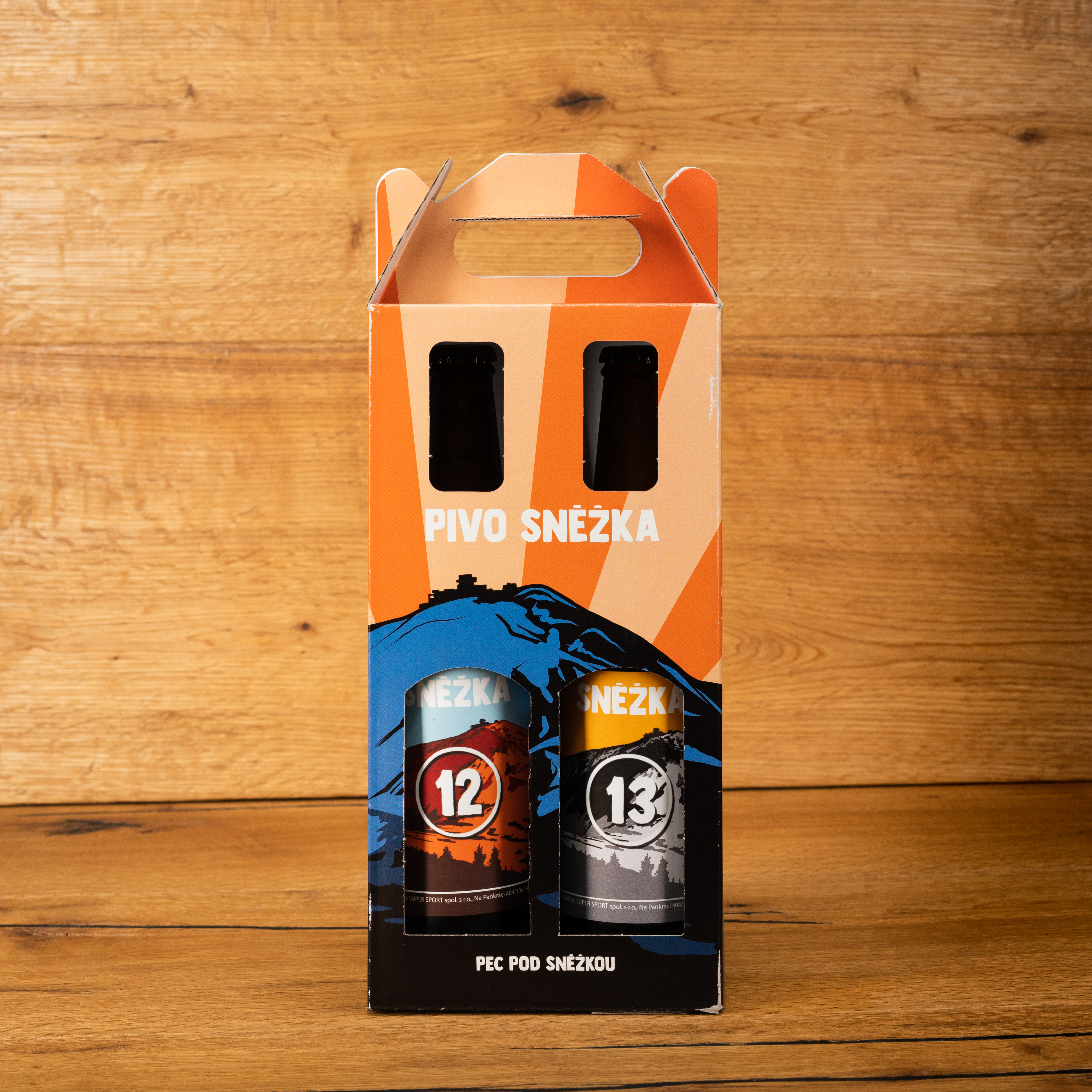 Dárková krabice výborných piv z řemeslného pivovaru Sněžka z Pece pod Sněžkou. Sada obsahuje dvě půllitrové lahve: Světlý ležák 12° a Tmavý ležák 13°. Piva udržujte v chladu.