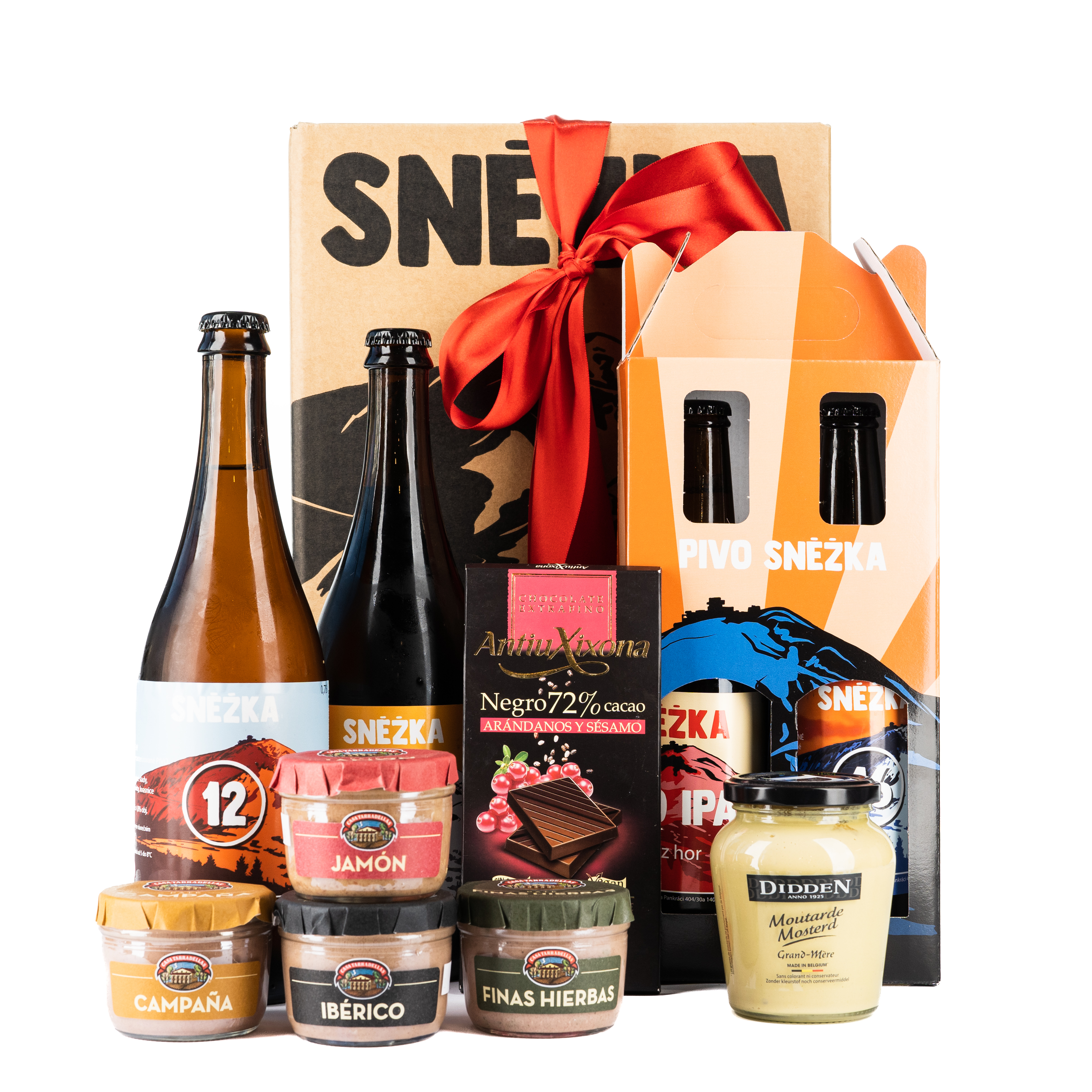 Objednejte náš dárek Dárkový expres a zažijte okamžitou rozkoš! Obsahuje 2 lahve 0,7l piv z pivovaru Sněžka, 4 španělské paštiky, belgickou hořčici, španělskou hořkou čokoládu s brusinkami a 2 lahve 0,5l piva Sněžka, vše elegantně zabaleno v dárkové krabici s mašlí.