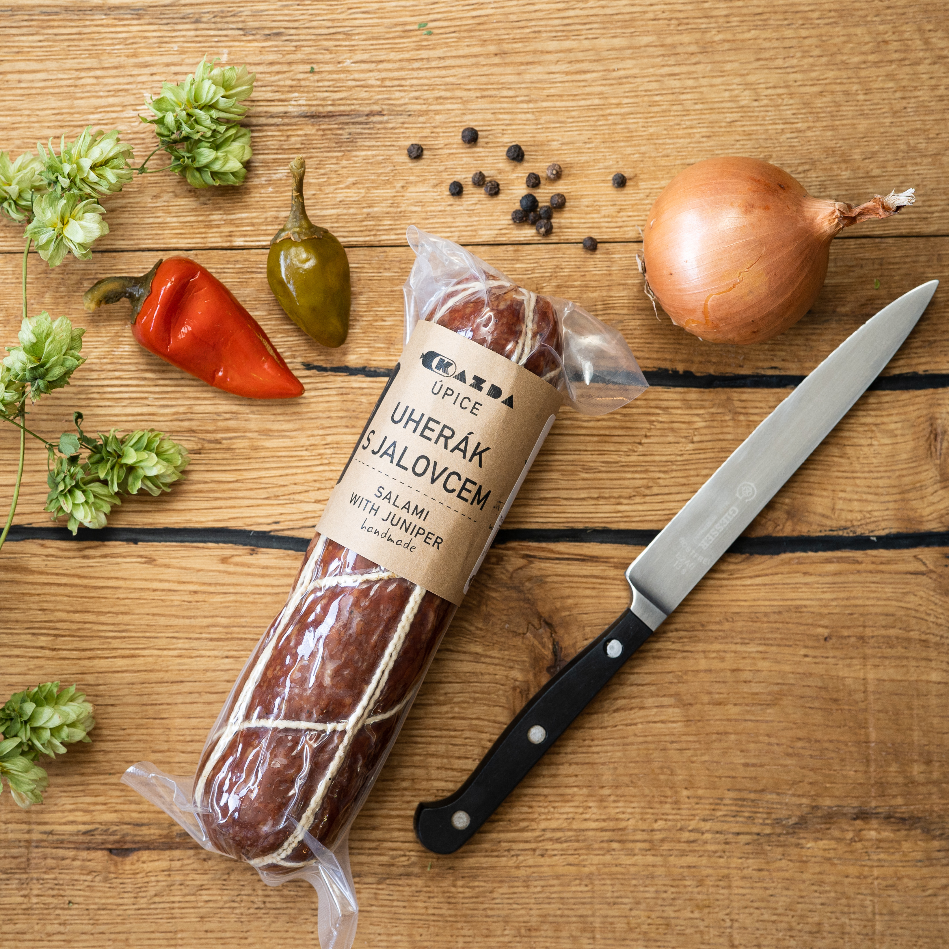 Tři měsíce sušený uherák s jalovcem - Výjimečná lahůdka z malé uzenářské výrobny. Jedinečná chuť, která zrála během tří měsíců sušení. Každý kousek nese péči o kvalitu a autentickou tradici. Skvělá pochoutka pro milovníky originálních chutí.